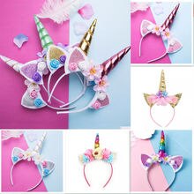 New Cute Women Kids Headband Sweet Flower Unicorn Horn Hair Band Birthday Party Flower Floral Crown Headwear