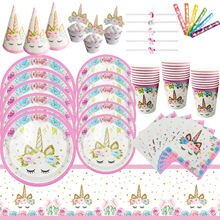 Unicorn Birthday Party Disposable Tableware Pink Unicorn Paper Plates Cups Napkins Girls Birthday Party Baby Shower Decoration